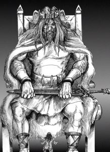 Crom rarely intervenes, taking the role of an ancient monarch. He neither wants sacrifices of animals or temples, those are for the other gods who serve him. Rather, he gives his followers a will and courage, and then they must fight in combat to feel what he feels, and then when that experience builds up to a battle with no certainty of winning, they must pray to him for courage. Then with victory, can a warrior’s newfound faith make sense of all things.